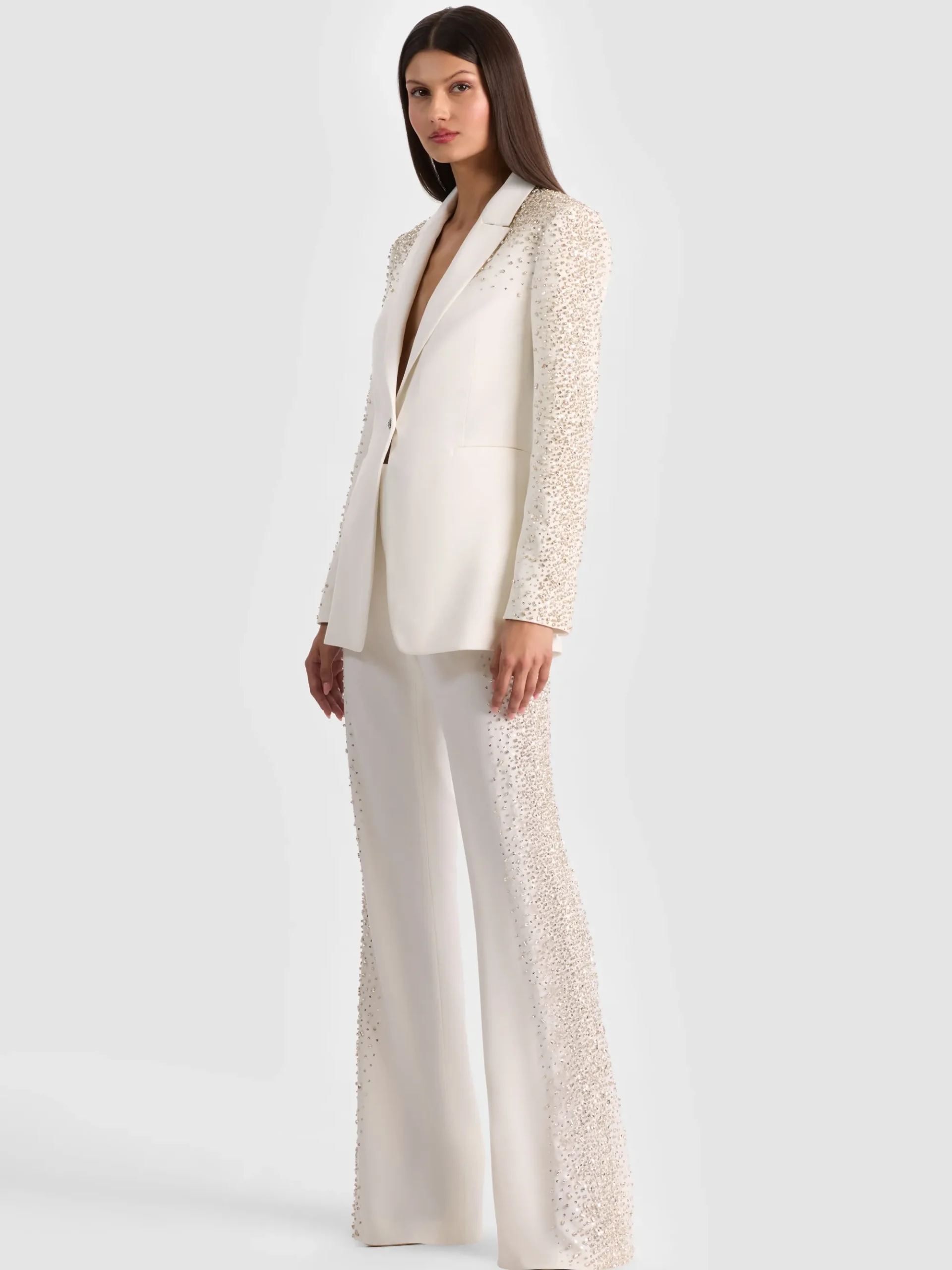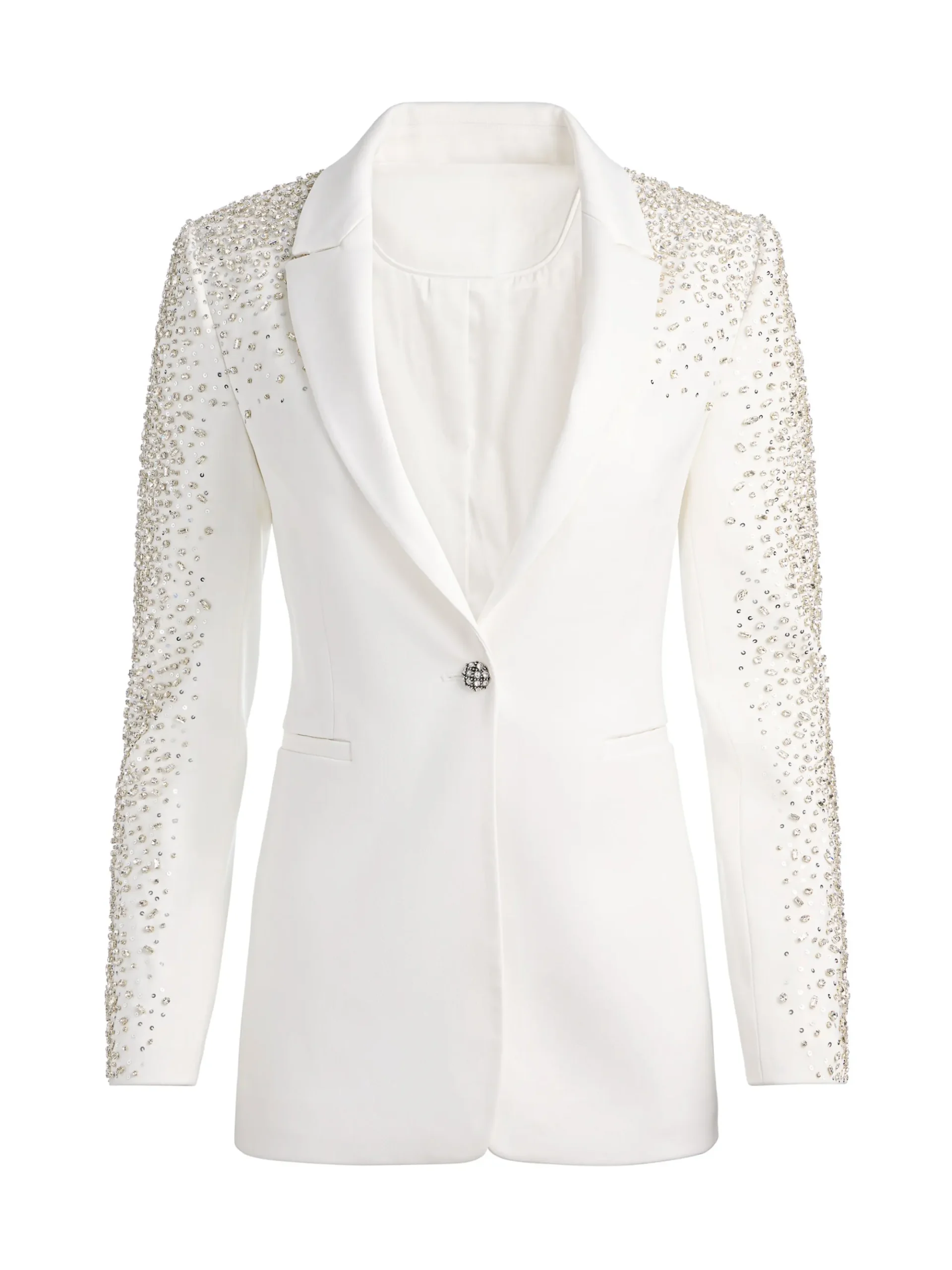 - Embellished crystals on matte satin crepe