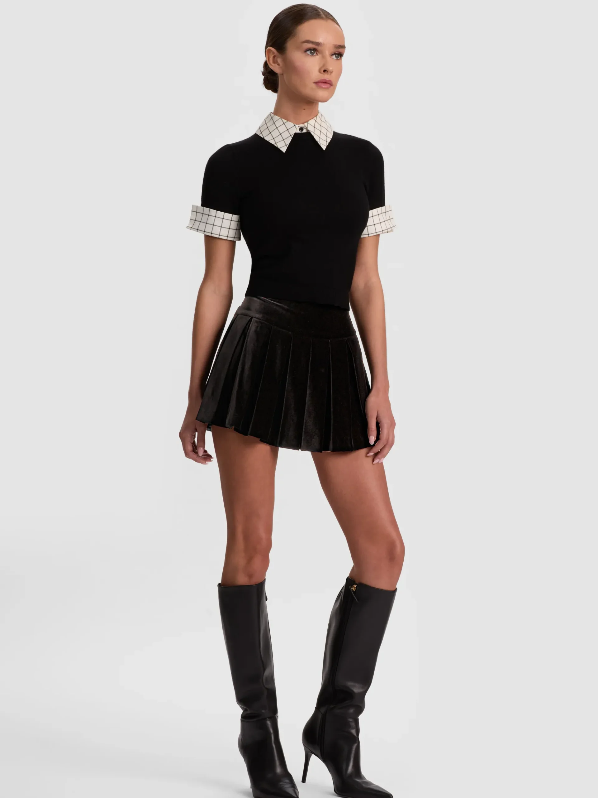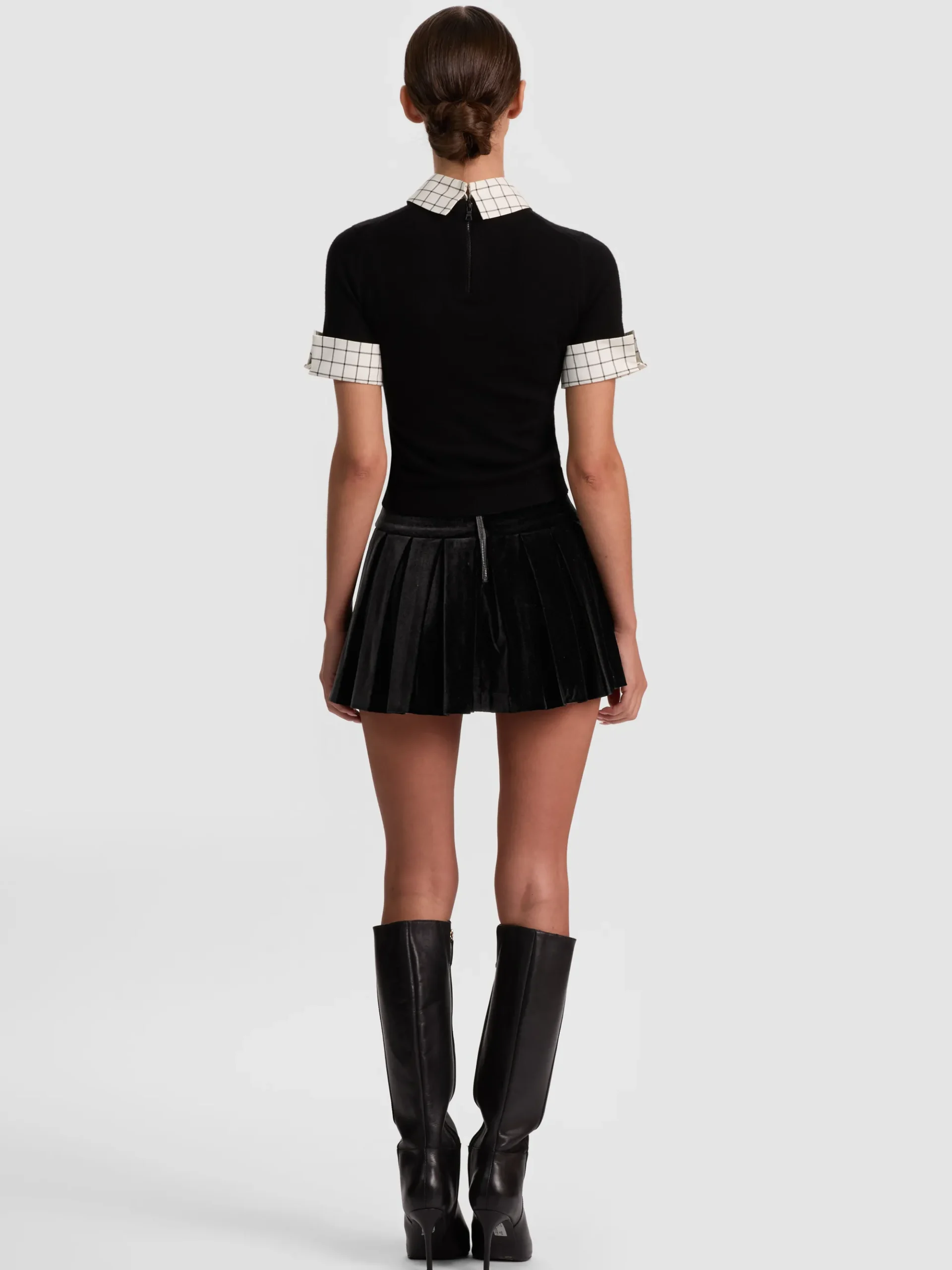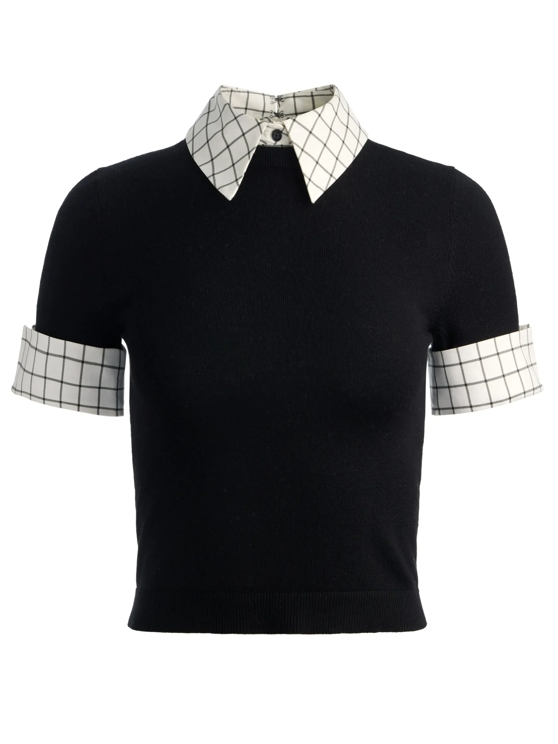 - Removable plaid collar and cuffs