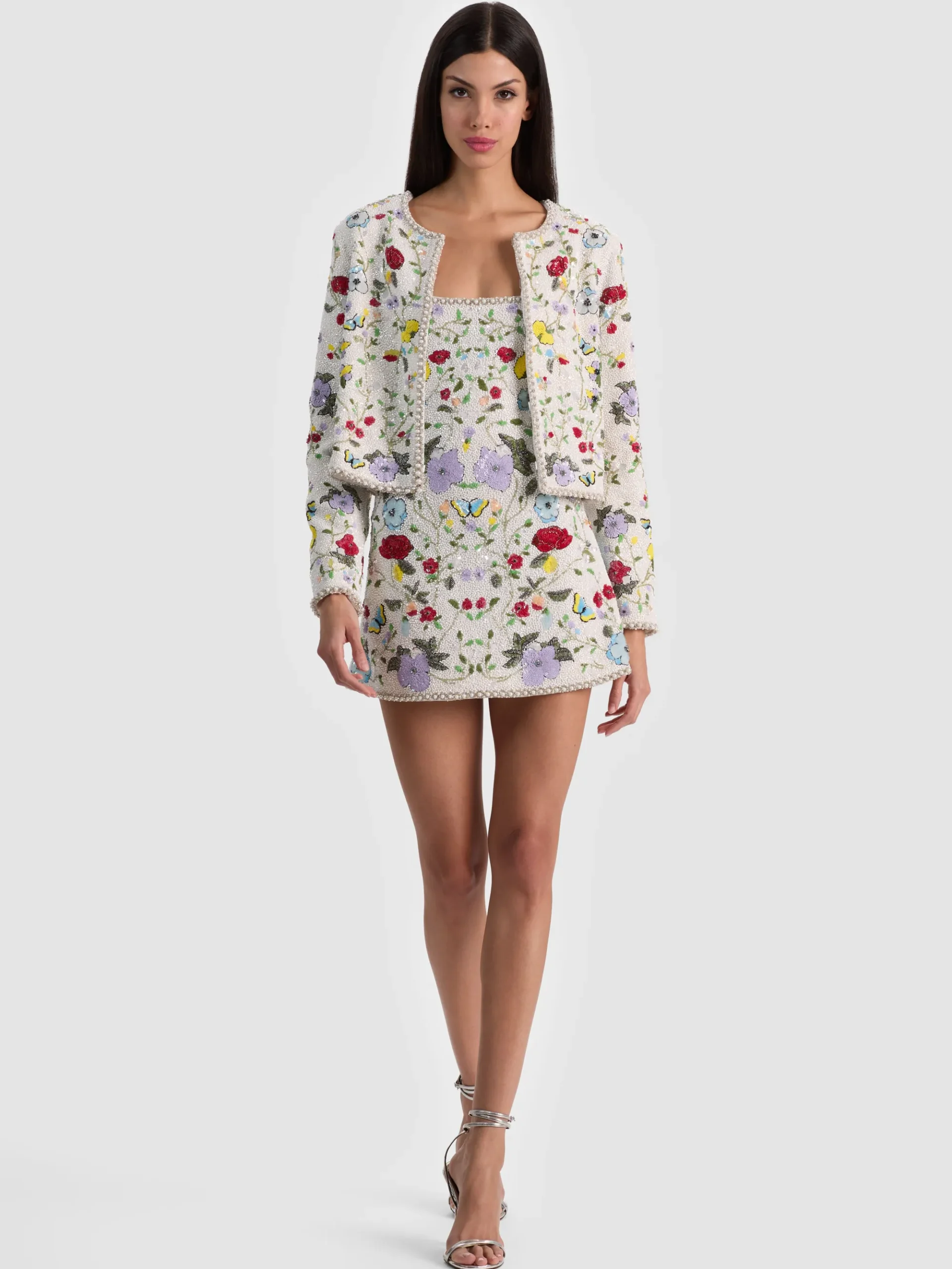 - Sequined floral motifs