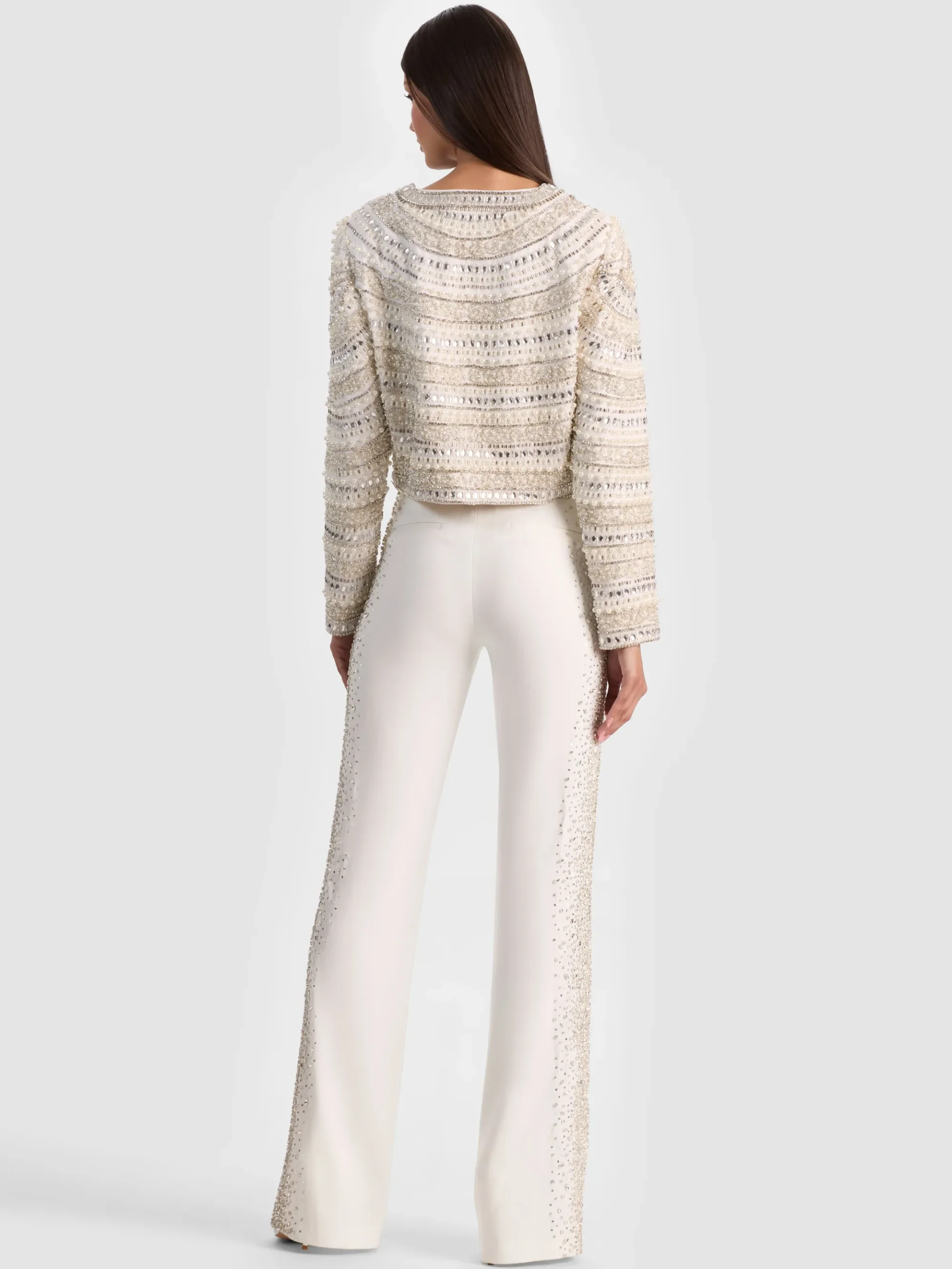 - Hand-embellished pearls, crystals, and beading on organza base